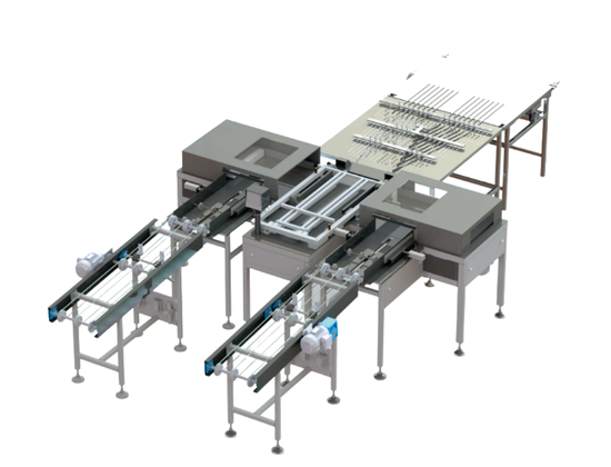 Gofret Kesim Makinesi, soğutma tünelinden çıkan büyük ve bütün haldeki gofret bloklarını, market raflarında gördüğümüz standart boyutlara getiren makinedir. “Çiftli” olması, makinenin blokları hem enlemesine hem de boylamasına (90 derecelik iki hareketle) kesebildiği anlamına gelir. Bu işlem sırasında çelik teller veya bıçaklar kullanılır. Uluçınar modeli, bu kesimi milimetrik hassasiyetle yaparak fireyi minimuma indirir.